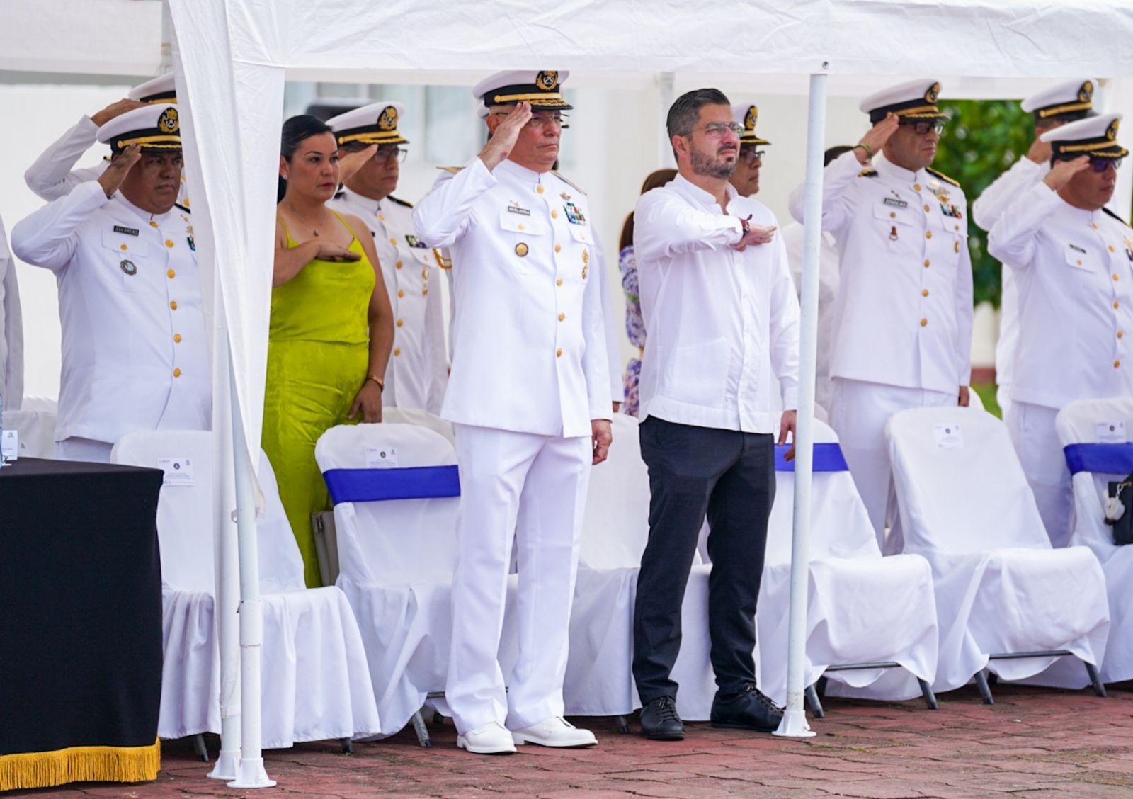 La agenda de actividades del legislador local inició en la explanada de la Base Naval del Golfo, donde acudió como invitado para celebrar junto a autoridades navales, militares y funcionarios de los tres niveles de gobierno la creación el 4 de octubre de 1821 de la Armada de México.